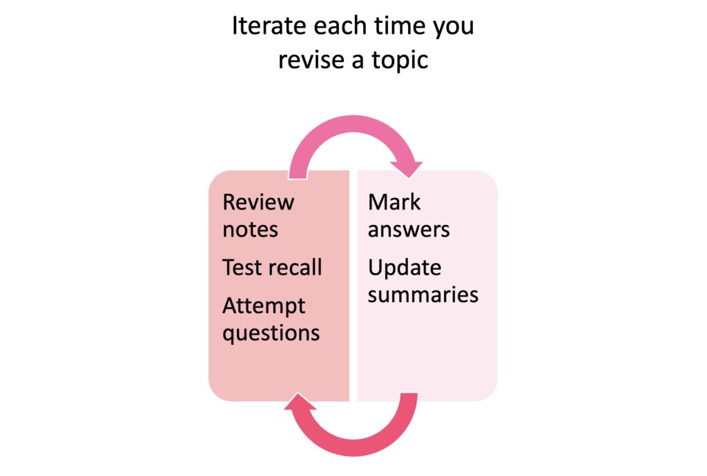 You will spot all sorts of tricks and handy reminders that can go in your revision summaries. You will be reminded of key techniques and useful facts. You will get a better feel for how to answer long-form questions. All these insights can go in your summaries, and with each iteration your knowledge and skills will improve.