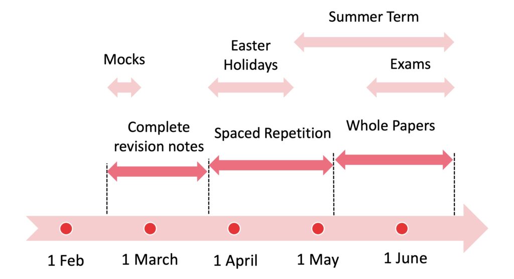 This is, of course, just a suggestion and you can change the details depending on your needs. For example, you might want to tweak it based on how long you need for completing revision notes, how many past papers you want to attempt, and the dates (or estimated dates) of your exams.