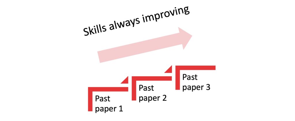 As you can appreciate, the goal of practicing past papers is not necessarily to score high marks (at least at the beginning), but rather to learn as much as you can from each past paper. You want to continuously improve with each past paper you try.